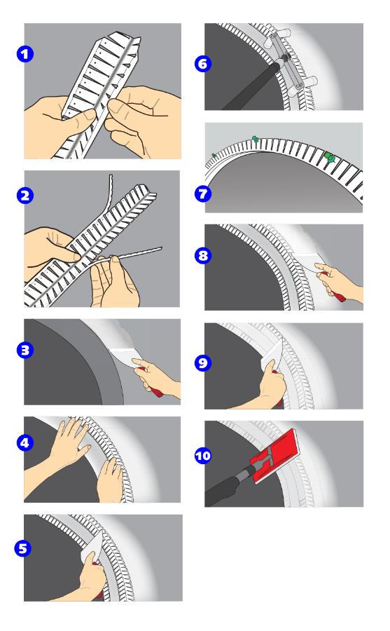 Измерить изгиб поверхности с помощью арки-Flex как рулетка. Отрежьте к измеренной длине плюс 1 дюйм.