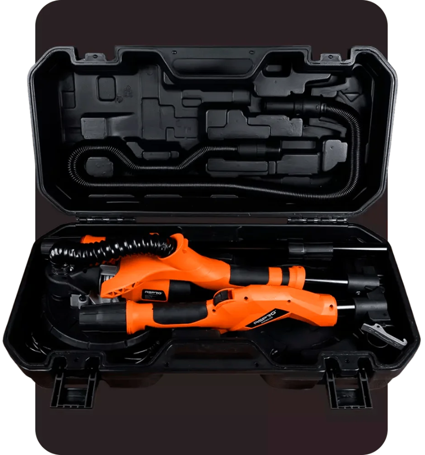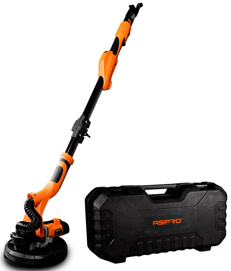Так из-за телескопической ручки называют серию шлифовальных аппаратов ASPRO. Длина модели C8 – 114 см, вес всего 4,2 кг: удобно работать на стенах и потолках, готовить площадь к покраске или оклейке обоями.