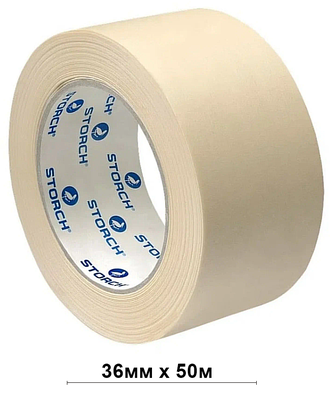 Лента малярная бумажная, креповая 50м - скотч малярный выполнен на каучуковом клее, который позволяет до неделе держаться на стене не оставляя следов. Малярный скотч не пачкает поверхности, к которым приклеен. Малярный скотч узкий STORCH 36 мм х 50 м (арт. 492838) отлично приклеивается и не оторвется в самый неподходящий момент. Преимущества: Прочная малярная лента со средней адгезией для гладких поверхностей внутри помещений. Толщина 0,12 мм, каучуковый клей. Термостойкость до 60°C.