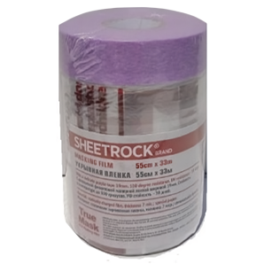 SHEETROCK КК пленка/клейкая деликатная фиолетовая лента до 100°C, УФ 30дней, 55смх33м Пленка 7 мкр. С тонкой специальной бумажной лентой с клеющим составом на акрилатной основе с дополнительным армированием для получения плоских краёв. Низкая адгезионная прочность и очень высокая влажность. Для гладких чувствительных поверхностей. Устойчив к ультрафиолету до 30-ти дней. Температурный режим до 100°С.