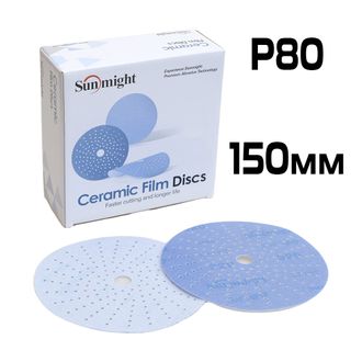Шлифовальные круги с мультипылеотводом Sunmight Ceramic L712T P80 – на пленочной основе для шлифования шпатлевки, грунтов и других лакокрасочных материалов.