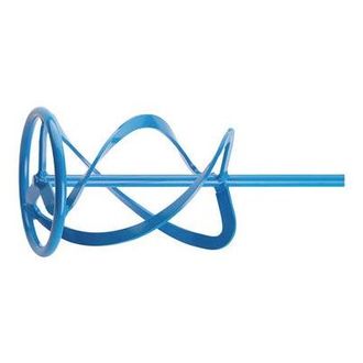 Спиральный миксер для перемешивания строительного раствора, сталь с порошковым покрытием для вязких материалов с низкой вязкостью (например, готовые штукатурки, бетон, стяжка, известь, цемент, выравнивающие составы). Эффект перемешивания: сверху вниз. Количество замешивания 20-50 кг. Мощность мешалки мин. 1000 Вт, 200-300 об/мин, крепление М14.